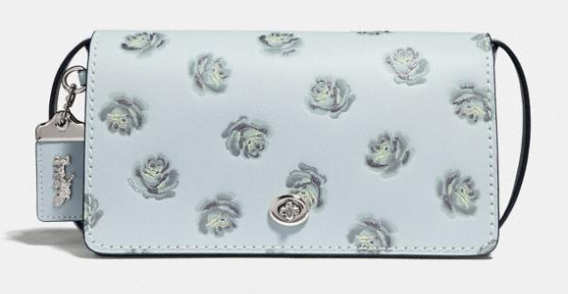 The Coach Dinky is a new addition to the Coach sale this week. This silver color is a new color for this purse with glitter rose embellishments.