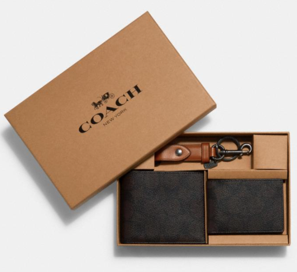 This Coach Boxed 3-In-1 Wallet Gift Set In Signature Canvas is the perfect chic gift for the men in your life.