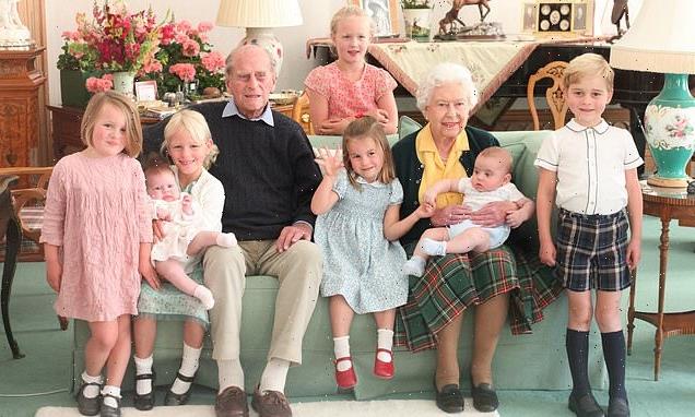 Prince Philip and the Queen cuddle up with their seven great-grandchildren in adorable new photograph of the family taken by