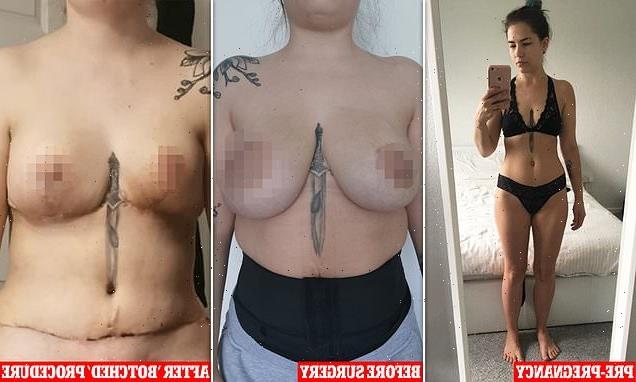 Mother is left with a ‘deformed’ right breast after her tissue DECAYED following a ‘botched £10,000 mummy makeover’ surgery in